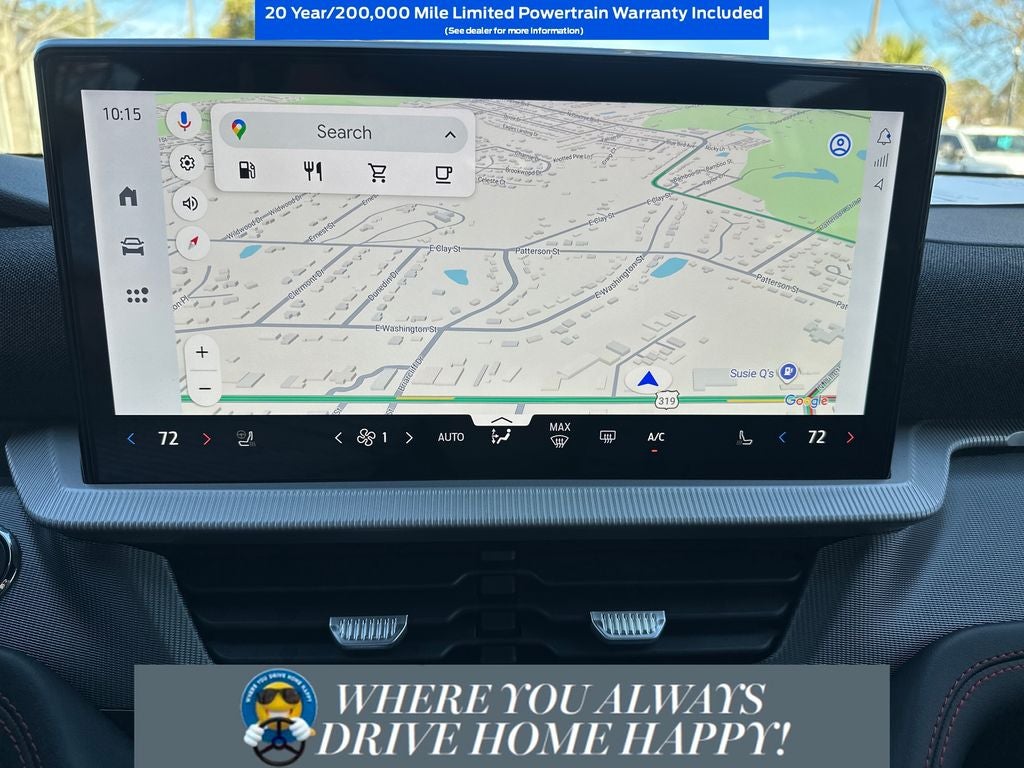 *When you purchase a new Ford or Lincoln from Thomasville Ford you will benefit from our 20 Year/200,000 Mile Warranty. Standard on all new, untitled vehicles 0-5,000 miles sold at Thomasville Ford, Our 20 year/200,000 Mile Warranty covers multiple aspects of your vehicle. It is a Powertrain Limited Warranty that covers: your vehicle’s Engine, Transmission/Transaxle/Transfer Case, and Drive Axle. For each repair visit, there is a $100 deductible as well as any costs uncovered by this Limited Warranty. This Limited Warranty is NON-TRANSFERABLE and expires the day the vehicle is traded, sold, declared a total loss, and/or any changes of ownership. When repairs are required, if possible, return your vehicle to the dealer. If you cannot return your vehicle to your dealer, you must telephone FWS at 1-800-327-5172 during normal working hours to receive instructions. To find out more about our 20 Year/200,000 Mile Warranty, see dealer for copy of limited warranty. For more details on this warranty please contact us anytime at 229-233-6240. 20/29 City/Highway MPG Price does not include tax, title, license, or $899 document fee. Price does not include the $2995 dealer installed package. Qualifying rebates and incentives include: $2000 - Conquest Bonus Cash - Jeep, Honda, Hyundai, Kia, Toyota. Exp. 03/31/2026 $3500 - Retail Customer Cash. Exp. 03/31/2026